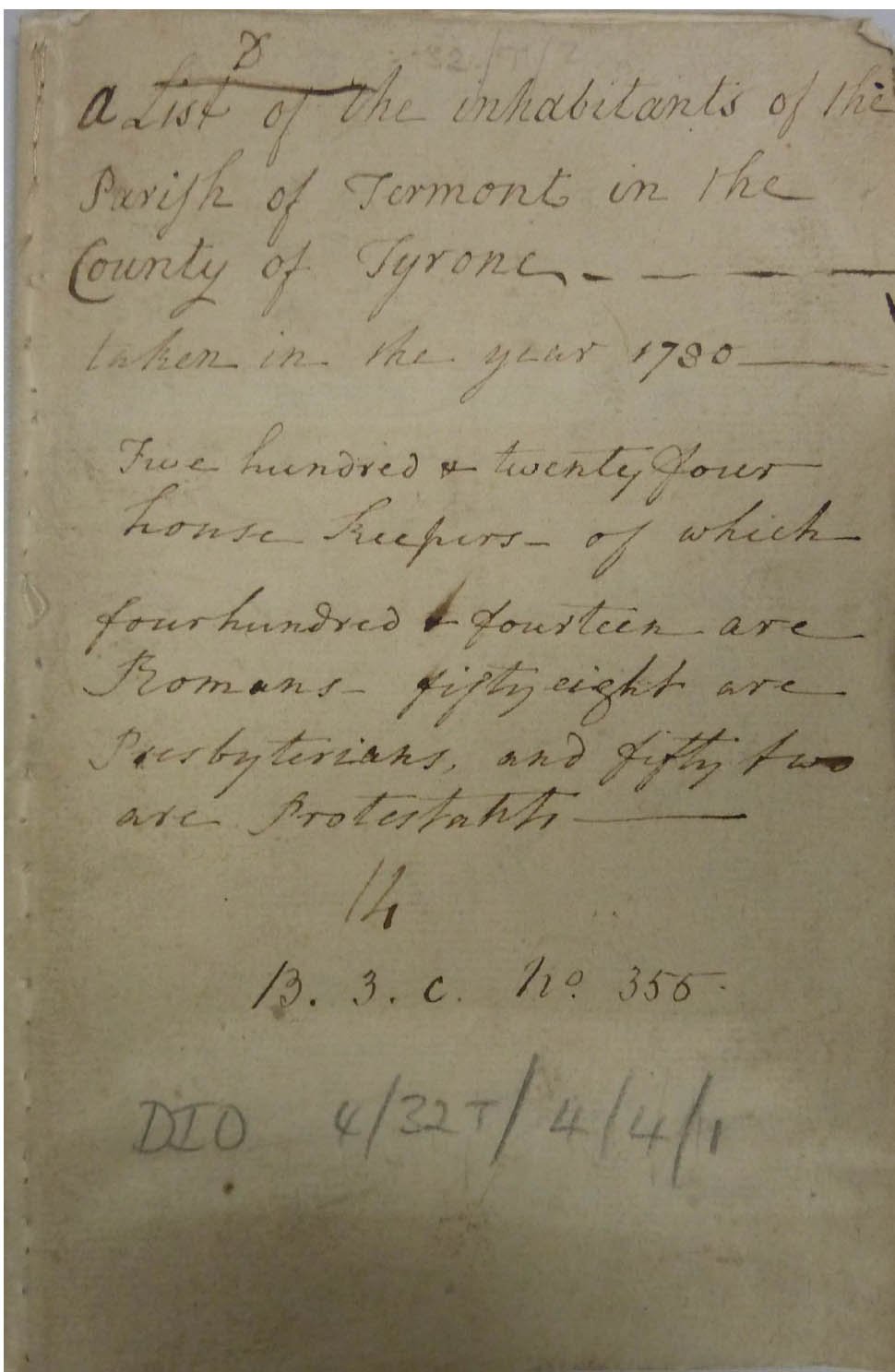 Religion - Documents - Religious Census of Termonmaguirk 1780